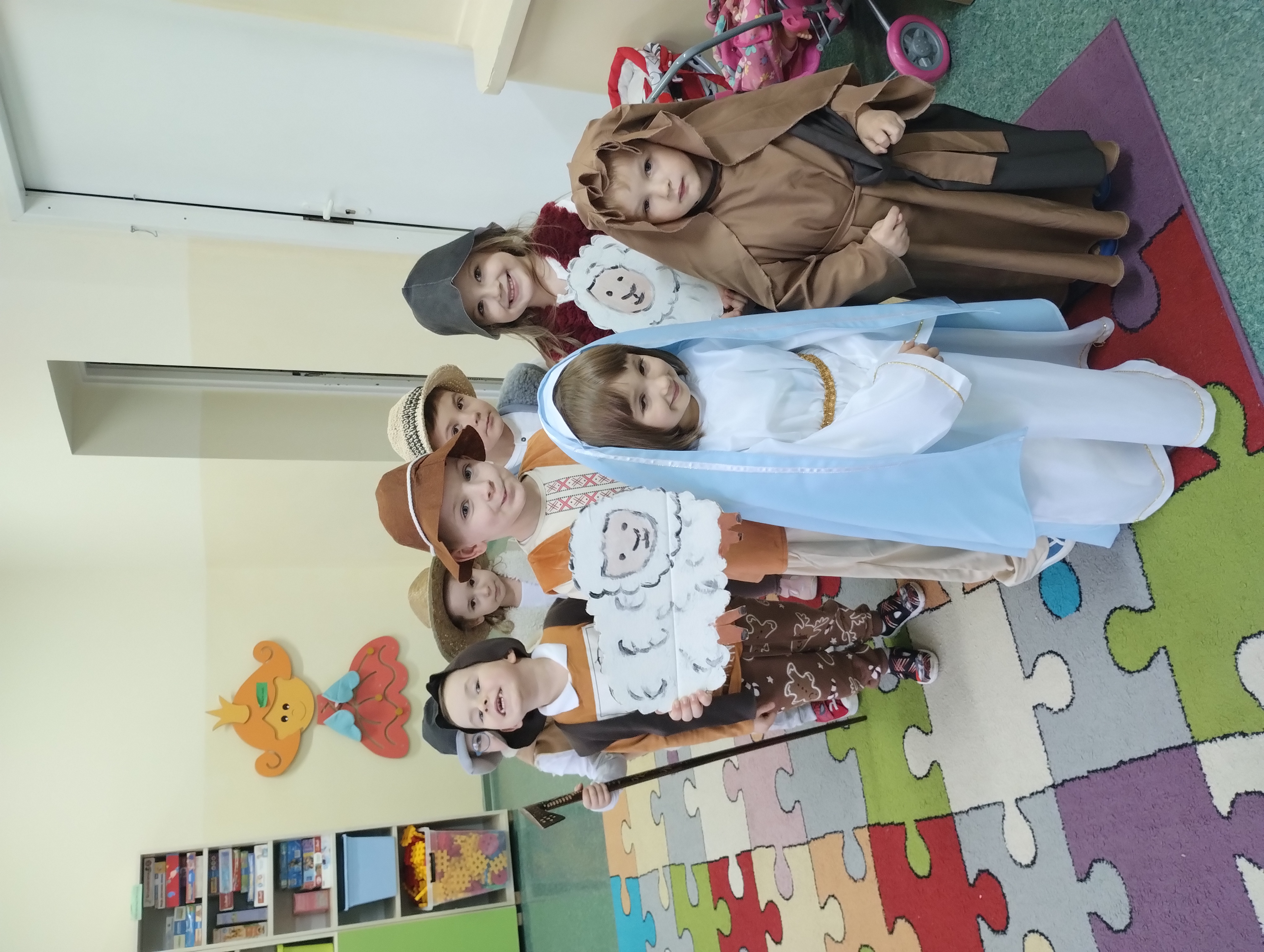 We wtorkowe popołudnie, 16.12.2025r, do Przedszkola w Daniłowie Dużym zostali zaproszeni Rodzice Żabek na wspólne kolędowanie. Przy choince i szopce dzieci , przebrane za pastuszków, przedstawiły krótkie Jasełka, które wprowadziły wszystkich w świąteczną, bożonarodzeniową atmosferę. Rodzice bardzo chętnie zaśpiewali z nami kolędy, oraz wysłuchali piosenek o Mikołaju, z którym spotkaliśmy się dzień wcześniej w Przedszkolu nr.2 w Łapach. Było to wyjątkowe spotkanie, rozmowy i pytania do Mikołaja kierowane przez dzieci, utwierdziły wszystkich o jego autentyczności. Nasze spotkanie zakończyło się życzeniami na Święta Bożego Narodzenia i Nowy Rok 2026. Mamy nadzieję, że się spełnią. Wesołych Świąt!